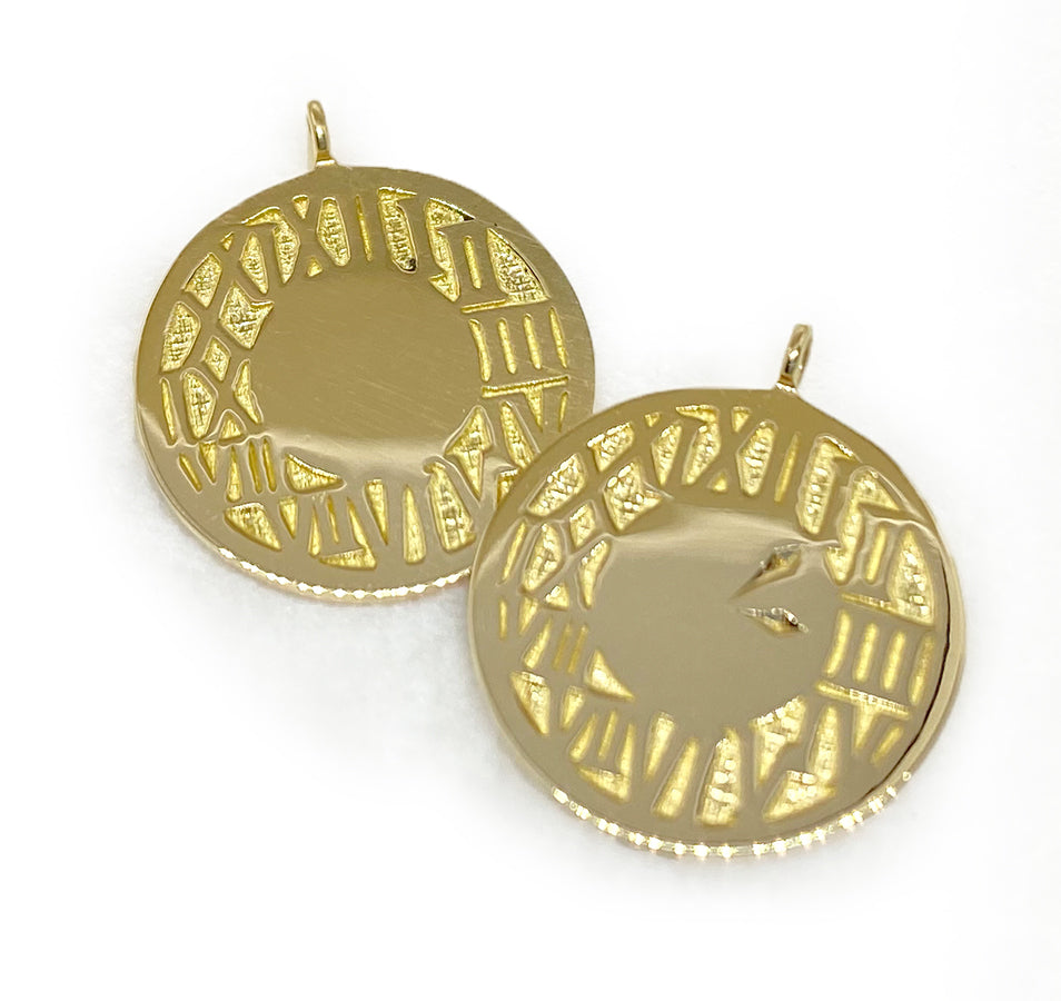 アニバーサリーラインMnemosyne(ムネモシュネ)のKAIROSカイロス。時計盤をイメージしたデザインに、生まれた時刻の針を彫刻できます。裏面にはお好きなメッセージやボーンレコードを刻めます。大切な思い出を目に見える形に残せる、世界で一つのジュエリーをおつくりいただけます。